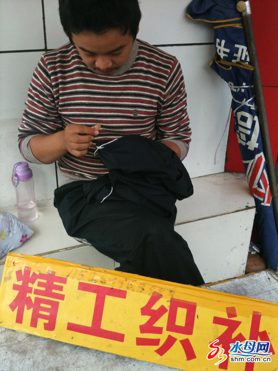 據(jù)趙輝介紹,煙臺(tái)流行織補(bǔ)衣服還是在金融危機(jī)時(shí),那時(shí)他的織補(bǔ)攤子前排滿了人,“好像因?yàn)榻鹑谖C(jī),大家開始會(huì)過(guò)日子了似的,很多人就把以前的老衣服拿出來(lái)穿,也就那時(shí)候開始流行了織補(bǔ)衣服。”
